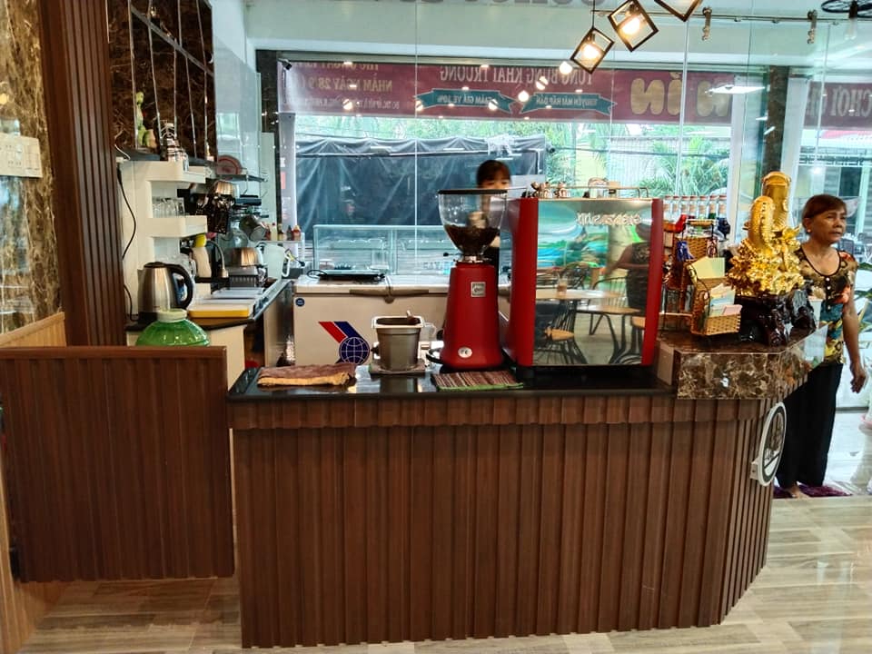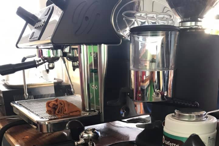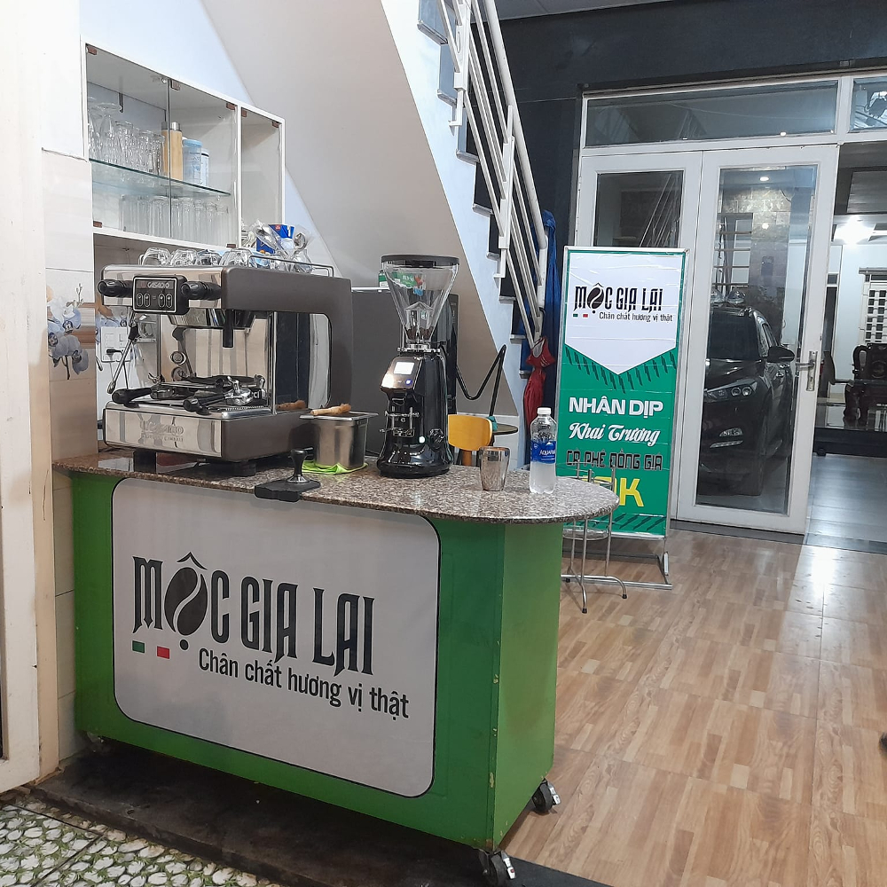 Cà phê mang đi Combo cho thuê máy pha cà phê, máy xay cà phê, bộ dụng cụ barista, xe gỗ cà phê, dù lớn, bảng hiệu, áo đồng phục